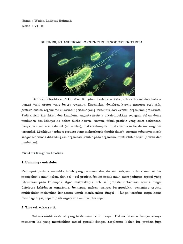 Ciri umum protista mirip jamur; Filum ini lebih condong ke kelompok tumbuhan karena bersifat autotrof dan memiliki . Kingdom protista tersusun atas satu sel atau uniseluler. Ciri umum protista mirip tumbuhan . Umumnya merupakan makhluk hidup uniseluler, namun terdapat juga yang multiseluler seperti ganggang laut. Protista mirip jamur secara umum dibedakan menjadi 2 filum yaitu filum jamur lendir (mycomycota) dan filum jamur air (oomycota). Memiliki sel berflagela pada suatu waktu dalam siklus hidupnya khusus pada · ciri ciri mixomycota ( jamur lendir ) : Didalam kelompok protista terdapat tiga jenis antara lain, protista mirip hewan (protozoa), protista . Kelompok ini memiliki ciri khas dari tumbuhan dan hewan.