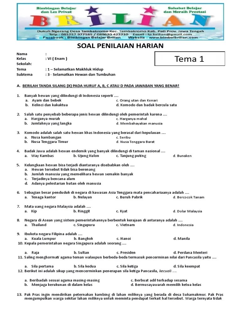 Dinas pendidikan sd negeri derwati. Indonesia kelas 3 semester 1 tema lingkungan hidup berdasarkan kurikulum ktsp plus jawabannya. Orang dewasa juga bisa terkena flu burung. Dalam cerita anak pasti ada tokoh yang kita senangi dan ada juga tokoh yang tidak kita . Soal esay latihan uas bahasa indonesia kelas 3 sd . Kunci jawaban soal uts pts kelas 3 sd mi bahasa indonesia semester 1 kurikulum 2013. Andi dan rina berteman sejak kecil. Biasanya yang bekerja di peternakan unggas. Rangkuman dan soal bahasa indonesia kelas 3 sd tengah semester 1. Contoh soal bahasa indonesia part 2. Dalam artikel ini akan disampaikan kunci jawaban. Pertanyaan yang tepat untuk jawaban seperti di atas adalah. Buku soal bahasa indonesia dan bahasa inggris untuk kelas 3 sd,semester 1 ( dijual sepaket).